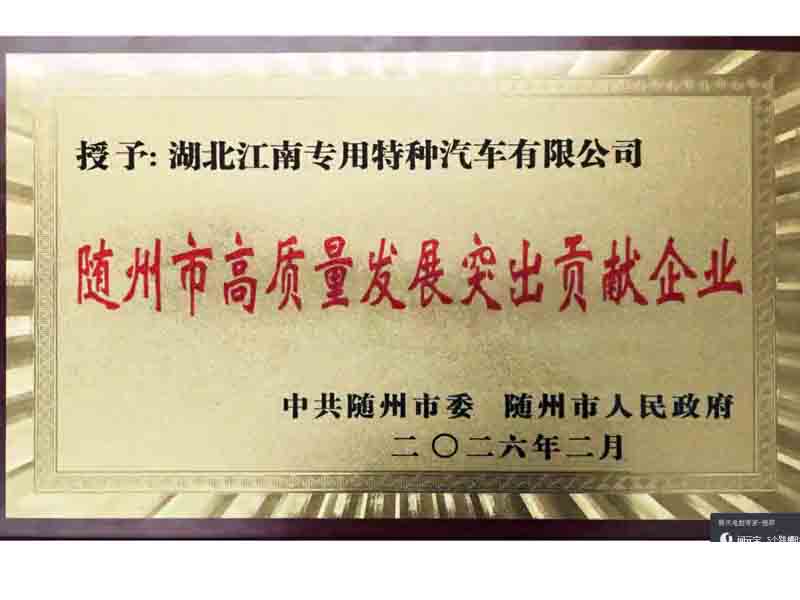 江南专汽公司 被授予随州市高质量发展突出贡献企业 发布作者: 湖北江南专用特种汽车有限公司官方网站发布时间: 2026-02-26 15:14:25 浏览量:次 简介:热烈祝贺江南专汽公司 被授予随州市高质量发展突出贡献企业,热烈祝贺总经理甘子林 被授予随州市高质量发展突出贡献企业家
