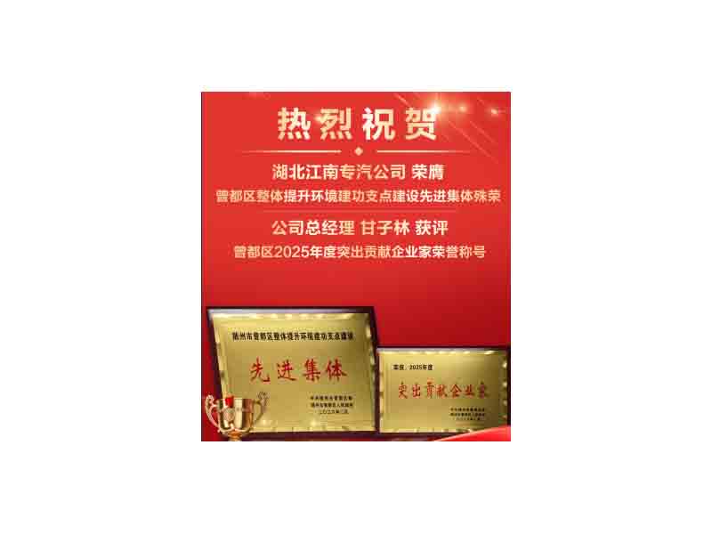 简介:热烈祝贺湖北江南专汽公司 ,荣膺曾都区整体提升环境建功支点建设先进集体殊荣,公司总经理 甘子林 获评曾都区2025年度突出贡献企业家荣誉称号。